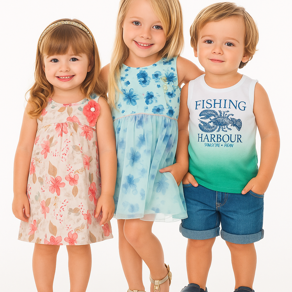 107833 Vestido moteado con listón fucsia/verde/rojo